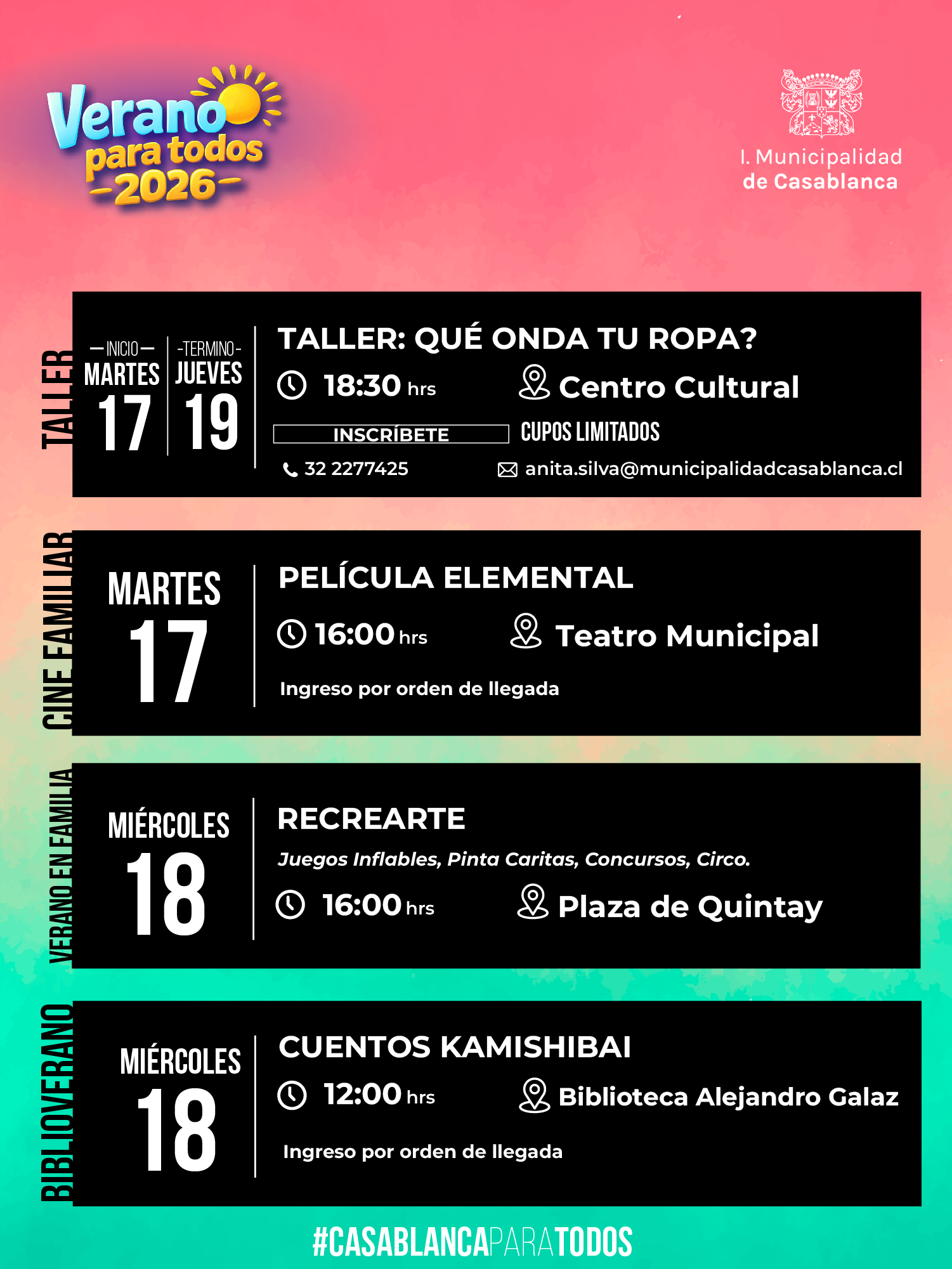En Casablanca urbano y rural tendrán cita estos eventos que serán gratuitos y abiertos a toda la comunidad.