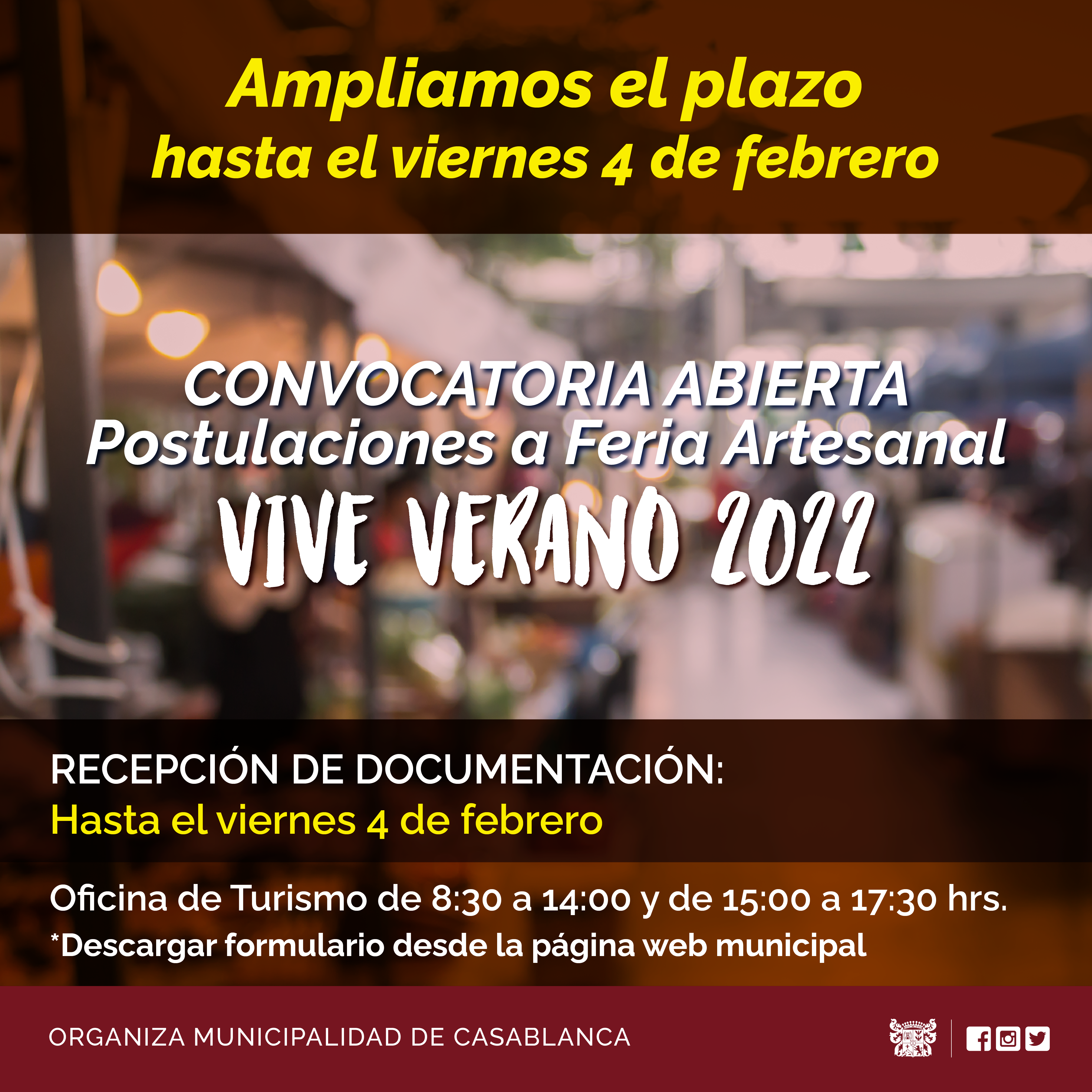 AMPLIAMOS EL PLAZO DE POSTULACIÓN  Feria Artesanal Vive Verano 2022